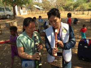 为农村贫童义剪。(图:柬埔寨星洲日报) ![]() 群英社长当选人PE Monica教授吹奏直笛。(图:柬埔寨星洲日报) ![]() 育幼院脑麻儿见到在台北群英社前社长王绢闵十分开心。(图:柬埔寨星洲日报) ![]() 参访去年服务的特挠村小学。(图:柬埔寨星洲日报) ![]() 小团员教授吹奏长笛,孩童争相学习。(图:柬埔寨星洲日报) ![]() 团员与学童刚粉刷完的墙面彩绘。(图:柬埔寨星洲日报) ![]() 吴哥社社长Anna捐赠文具予贫童。(图:柬埔寨星洲日报) ![]() 六社共同捐赠欧小学文具制服油漆粉刷。(图:柬埔寨星洲日报) ![]() 群英社前社长王绢闵代表捐赠物资予贫户。(图:柬埔寨星洲日报) ![]() 捐赠物资及大米予Loveng村150户最穷贫户。(图:柬埔寨星洲日报) |