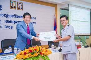 国家税务总监关威宝(左)接收由上丁省税务局长呈交的报告。(图:柬埔寨星洲日报) |