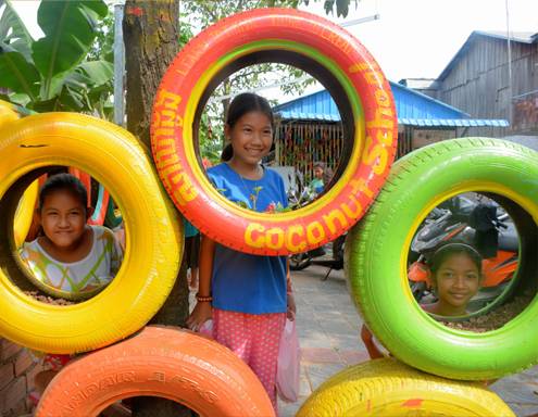 在金边,有一所“垃圾”建成的学校,它通过鼓励孩子把垃圾进行循环利用,在教导孩子改善环境、保护环境的同时,也是在帮助贫穷的孩子,让他们有机会上学读书。 这所学校名为“椰子学校”(Coconut School),创建于2013年,是一所用各种废弃物建成的学校,它位于金边断岛(Koh Dach)上。学校以英语教学、计算机培训和废弃物回收作为主要课程,并希望通过这三项课程让孩子们“学会思考,学会创造”。 用废弃物建成的学校正门,上面写着“椰子学校”(COCONUT SCHOOL) 在五彩缤纷的废弃轮胎前玩耍的孩子们 学校的负责人Vanday表示:“我们正在努力教导孩子们循环利用塑料等废弃物,让大家明白我们是世界的一部分,有责任去保护我们赖以生存的环境。” “而且,学校是鼓励用“垃圾”来换取学费的,而不是用现金。所以孩子们交学费的时候,只需要把可以循环利用的废弃物带上,就可以当做学费了。”Vanday补充道。 同时,他也承认现在学校的项目规模还不大,希望以后可以推广到更多的地方,让大家意识到现在严峻的环境问题,并鼓励更多的人参与到保护环境其中。 如何到达椰子学校 从地图上可看到,椰子学校位于断岛(Koh Dach)上。可在谷歌地图上直接写Coconut School Cambodia,便可出现具体定位。从金边王宫骑车过去用时大约30分钟,期间会经过一次渡船。来自:吴哥时报 |