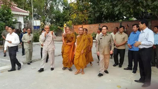 柬埔寨国王西哈莫尼将于本月17日前往暹粒省,主持“斯维东宫佛寺”落成剪彩仪式。 国王西哈莫尼将于本月17日驾临暹粒,主持“斯维东宫佛寺”落成剪彩仪式。图为关森沃本月9日在暹粒,就“斯维东宫佛寺”落成剪彩仪式作事先安排工作 关森沃表示,西哈莫尼国王将于本月17日出席“斯维东宫佛寺”落成剪彩仪式,并祈求佛祖保佑国泰民安、风调雨顺。国王陛下抵达暹粒时,民众将高举柬埔寨国旗和国王陛下的肖像,夹道欢迎国王到暹粒省。 |