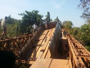(柬埔寨‧唝吥讯)一辆运载非法木材的大卡车超载,压坏桥身。 这起事件是于昨天午夜1时,在唝吥省速富县发生。 消息称,事发前,该辆卡车从实居省尖山县非法运载木材前往越南,当时,实居省林业行政局官员与唝吥省警队从后方追上,卡车驶上速富县的一座铁桥,但因为车身过重,铁桥塌陷,卡车卡在桥中央,司机立即下车,逃离现场。 事后,贡吥省初级法院副检察官甘速泊率领执法人员到现场,调查卡车与司机的背景,并安排人员把卡车拖吊前往唝吥省林业行政局。 据了解,这是该县第二次发生类似的事件。(柬埔寨星洲日报)