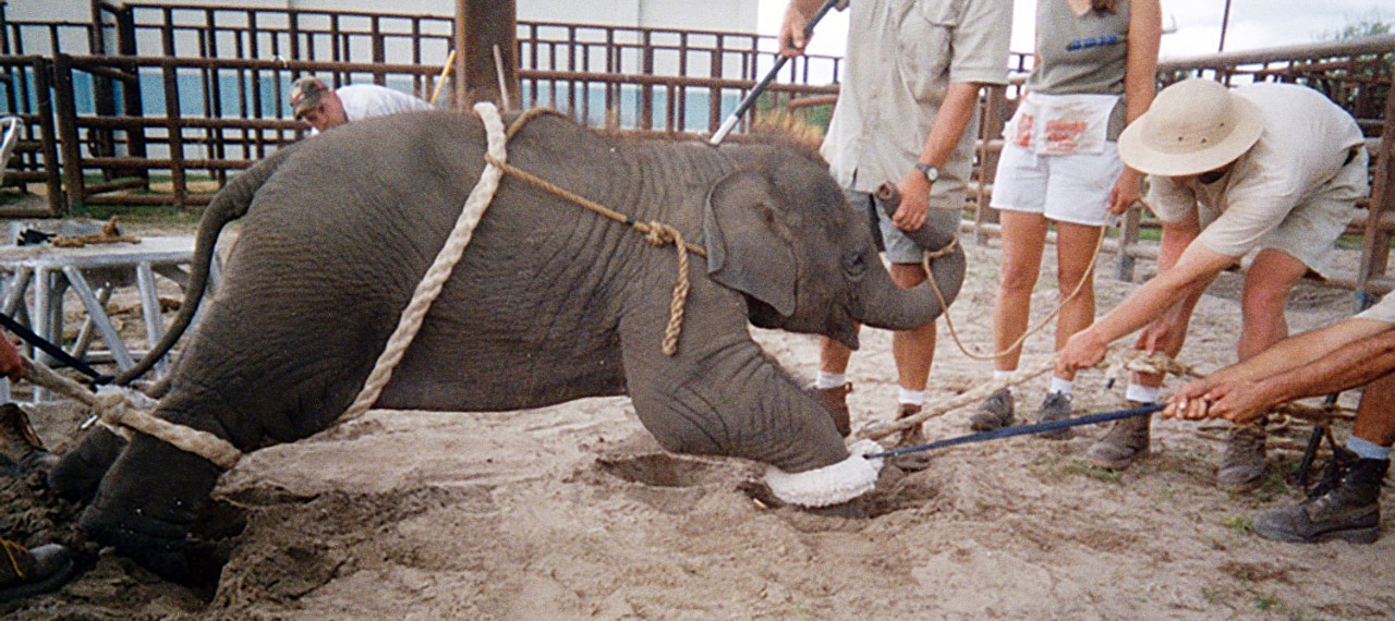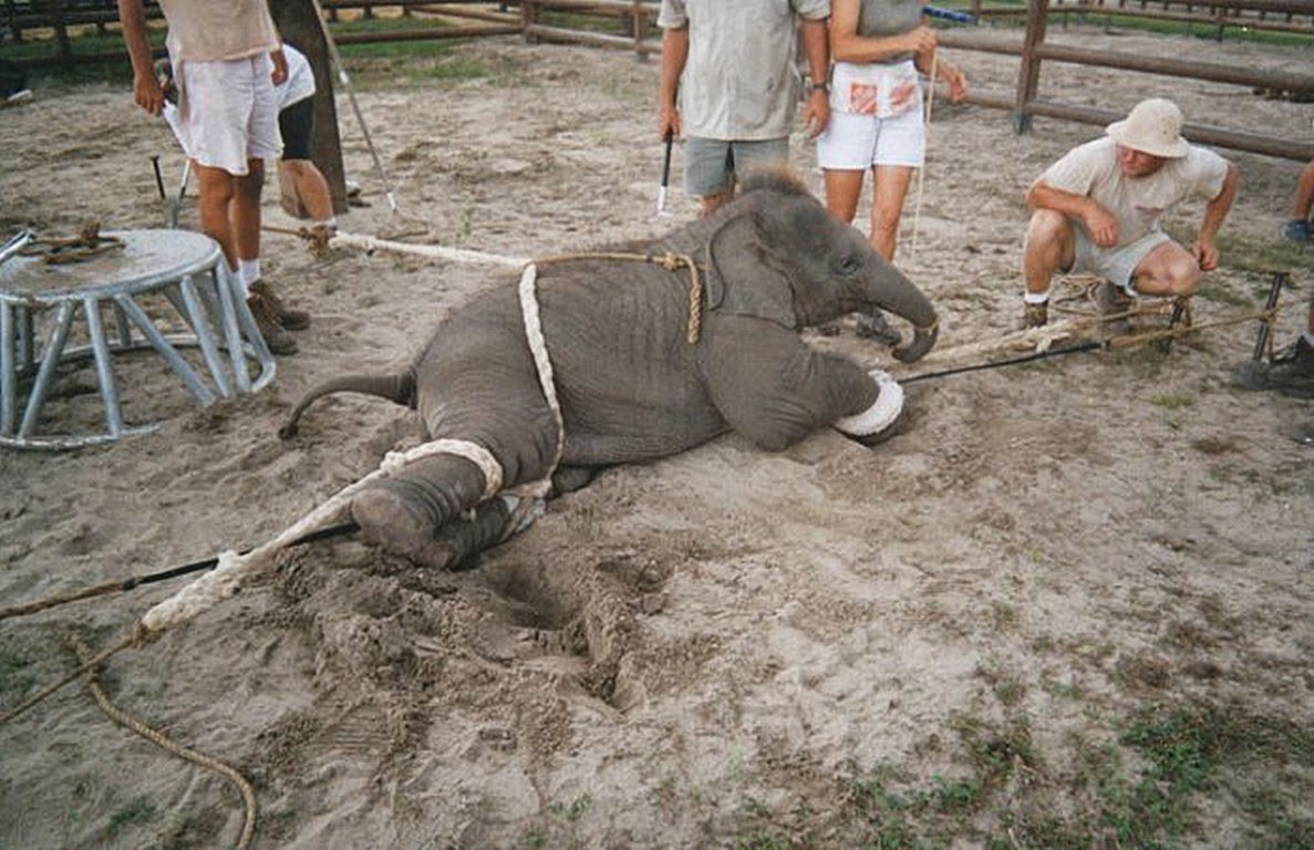 曾几何时, 去到东南亚骑在大象的背上 和这种神奇的生物零距离接触是我的梦想。 ❤ 但如果这也是你们的梦想,那请继续看下去, 这个视频会让你们震惊, 并彻底改变你们的想法。 这是被某些网站禁播的 完整版《黑象》视频 希望能让更多的人看到 泰国大象旅游业背后的黑暗真相 去东南亚旅游的人, 都少不了去看看大象—— 到泰国象园骑大象 看大象在烟花中表演各种杂技 看场中的大象作出抽象派的画作 然而 没有人知道 在这些看似美好的场景背后 那些原本自由生活在野外的大象 到底经历了什么 ◆ ◆ ◆ ◆ ◆ 去年4月,在柬埔寨吴哥窟 有只大象因为不堪长期载客 在大太阳下热衰竭而死 它在众目睽睽之下倒地,连眼睛都没闭上 这并不是第一只热衰竭而死的大象 也不会是最后一只 一百年前 泰国有大约30万头野生大象 而如今只剩下不到1500头野生大象和3500头被人工驯养的大象每只象都要经历残酷的驯化过程 每头大象都有特定的驯象员,他们的四肢都会被铁链锁住,训象员会用特制的铁钩钩住象耳,鞭打背部,从而训练大象按照指令行动。 大象的脊椎会因为长时间背负人类的重量而受伤。象夫为了控制大象的行动,会使用金属制的勾子刺击大象的身体来指挥它的行动,这样的行为会让大象累积恐惧,因为它们有着惊人的记忆力。 《每日邮报》记者在印度南部,亲眼目击一个训象员在众多游客面前让一头大象躺下,然而尝试了很久,大象也不听从指令,这让训象员恼羞成怒,说“一会儿再仔细教它”,这意味着这头大象将会面临惩罚。 不听话的大象都会长期锁在铁链上,下图是一头叫做Nandan的大象,它已经43岁了,后腿被铁链绑在桩子上,前腿被绑在树上,无法正常躺下,也无法自由的伸直躯体,它已经被这样捆绑了20年,没有一刻自由过。 驯象过程更是难以想象的残忍 泰国驯象师们采用的是一种 名为“Pajaan”的驯象手法 “Pajaan”意思是“打破、分离” 这意味着大象不仅需要与家人、同类分离 还要经历自身的精神、肉体分离 泰国的Maesa大象基地首创了大象作画表演:基地的小象两岁就面临母子分离,幼象要经历包括饥饿、桎梏与击打的驱灵仪式,直到其精神完全崩溃全心全意服侍主人为止,之后它们才可以学习作画。 小象需要花一个月来学习把刷子挂在鼻子上,这些刷子会塞进它们敏感的鼻子里。而一旦画错,象钩和钉子就会刺进它们的耳朵。 野生大象的寿命和人类相似 怀孕周期22个月 它们也是非常恋家的动物 雌性大象一辈子都会和母亲在一起 雄性大象在13岁之前也会和母亲待在一起 但如今 小象在很小的时候,就要被迫与母亲分离 被驯象师用铁链锁住 野生的亚洲象在野外每天会摄取新鲜的叶子和蔬果,在这些地方,它们只有干棕榈叶可以吃;野生的象每天要喝大概140-200公升的水,在这里,运气好也只能喝到5-10公升。 训象者有一些特制的小笼子,用来惩罚大象。大象被关入后无法动弹,转身,更无法躺下,没吃没喝,还有人会拿石块扔它们。 有不少这样的大象,有的因为不听话,被打断了腿,有的眼盲,只能长期在虐待中流泪。 在被问到是不是每头大象都会经受这种残酷的训练,相关人员回答:“这是必须的,因为大象是很敏感且聪明的生物,如果不是这样残忍的训练,磨掉它们的本性,根本不能骑,更不能听指令表演节目。” 驯象师只会给大象少得可怜的食物 让它们断水挨饿 并不停通过噪音保持大象清醒