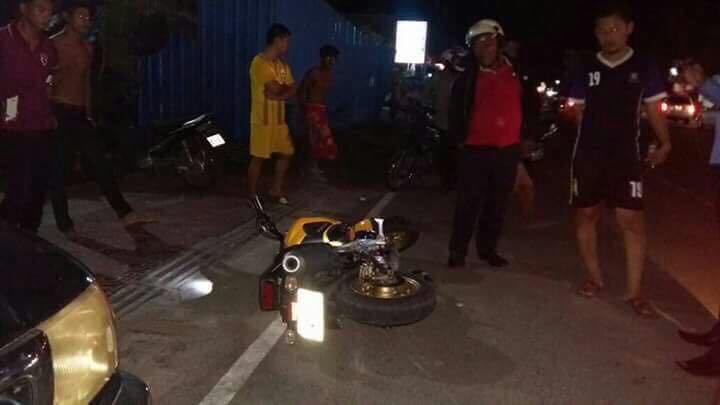 | 西哈努克讯:根据西哈努克省的记者在四号分区,二号村的幸福二店面前的卡马拉大道在2017年2月28日的晚上八点五十分钟时,发生交通事故,由一部摩托车和一辆汽车。这场事故导致一人重伤(摩托车的骑士),已被紧急送过去医院急救在西哈努克省的医院。至于肇事汽车临时逃脱,但警方在迅速的追查肇事汽车。 |