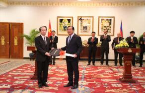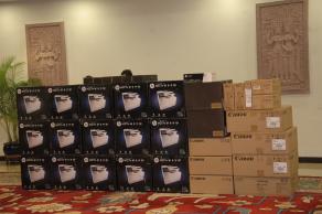 赠送的办公设备包括桌式电脑、笔记本电脑、复印机等。(图:柬埔寨星洲日报) ![]() 捐赠仪式于昨日上午在外交部举行,外交部长巴速坤(右)和中国驻柬埔寨大使熊波出席。(图:柬埔寨星洲日报) |