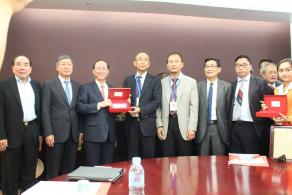 美国潮商总会代表团主席团欧佳霖亲率美国各州潮商会及来自中国潮汕地区、香港、泰国等地代表,于昨日前往加华银行,拜访新任柬华理事总会会长、加华银行董事长方侨生,本地潮商楚翘方灿成、王汉明、郑源来等也出席。() ![]() ![]() |