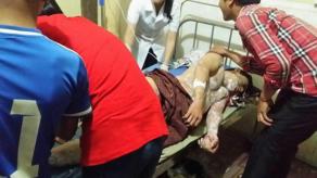 消息称,事发前,一辆大卡车由金边市前往西哈努克省,驶至案发地点时,卡车失控,猛撞反方向车道的2架摩托车,导致摩托车着火,2名男子被烧成重伤。