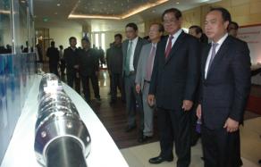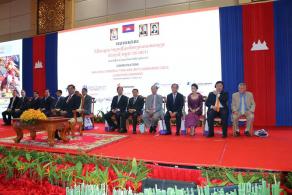 EZECOM母公司皇家集团(Royal Group)董事长陈丰明(右起)、副总理苏庆和邮电部长陈友德视察海底光缆。 ![]() 马柬泰海底光缆(MCT)启用仪式。 |