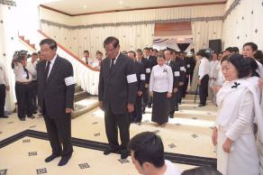 洪森总理于昨天下午率领多名副总理及内阁部长,在灵堂前向宋安致敬。(图:柬埔寨星洲日报)