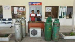 (西哈努克17日讯)2名男子涉及偷窃煤气桶及空调箱,被警方逮捕。 警方是于前天凌晨2时30分,在西哈努克市4号分区逮捕嫌犯,分别为唐马卡拉(30岁)及坤比龙(28岁),事主为穆丹(58岁),3人住西哈努克市。 据警方指出,事主发现房屋被撬开,5个煤气桶及一个空调箱失窃,就去警局报案。 警方调查而怀疑上述男子涉案,将他们逮捕后找回事主的物品,并起获剪铁刀等干案工具。 事后,警方把煤气桶和空调箱交还事主,把嫌犯送往西哈努克省初级法院立案,依法处置。(柬埔寨星洲日报)