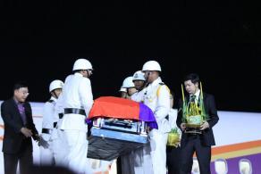 宋安副总理5名子女在灵堂守护。(图:柬埔寨星洲日报) ![]() 中国驻柬埔寨大使熊波昨天凌晨到机场接宋安遗体回国。(图:柬埔寨星洲日报) ![]() 由柬埔寨国旗覆盖的灵柩抵达金边机场。(图:柬埔寨星洲日报) ![]() 宋安灵堂庄严肃穆。(图:柬埔寨星洲日报) ![]() 宋安小女儿在机场等候父亲遗体回国时,神情悲伤不已。(图:柬埔寨星洲日报) |