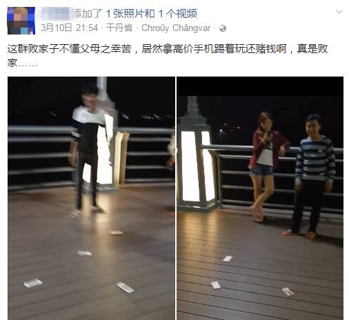 最近, 一段视频传遍柬埔寨社交网络, 视频中有一群年轻人, 拿着高价智能手机踢着玩, 仔细一看还都是iPhone手机。 这土豪的世界我们真的不懂~ (戳视频) ▼ 参加这个游戏的人不少于6人,他们聚在一起,一人拿一部iPhone手机玩游戏!我们以前只看到过,在柬埔寨的小孩喜欢踢鞋游戏,没想到现在已经开始演变成用手机玩儿了?! 该视频是在本月10日发布的,视频是来自一个中文名的脸书账号,后来这个视频就在柬埔寨人圈子里火了。至今已有45万多次播放量。 视频中,我们可以听到拍摄者是一个讲中文的男子,他一直喊着“败家子、败家子!”,加上发布者在脸书上用中文写道:“这群败家子不懂父母之辛苦,居然拿高价手机踢着玩还赌钱啊,真是败家...”,所以媒体推断拍摄者有可能是一名中国人。 据媒体推测,画面里的手机包括,iPhone5,5s,6,6s总共6部手机,他们玩的地方就在湄公河岸边。 一些网民对此视频也发表了一些评论: “这些年轻人是越南人,不是柬埔寨人” ▼ “如果厉害就买7来玩吖” ▼ “如果不能帮助爸妈,请别败家” ▼ 据柬媒Khmer load报道,一些网民发布在新加坡媒体Stomp上得知,视频中的人是生活在柬埔寨的越南人,而拍摄者可能是中国人。 无论是哪国人,你不要可以给我呀! ▼ 来自:柬单网 |