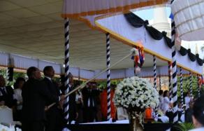 我国高官显要、外国官员与使节等参与送殡和火化仪式,包括柬国会主席韩桑林、参议院主席赛冲、洪森总理及夫人、印度尼西亚副总统莫哈末与夫人、泰国副总理兼外交部长塔纳萨、柬国会议员、参议员、政府各部门代表。