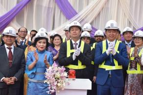国土规划和建设部长谢速帕拉(中)昨日出席凯悦大酒店动工仪式。 |
