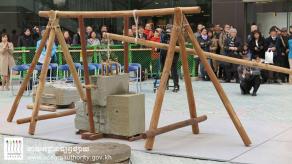 (柬埔寨‧暹粒讯)仙女机构与日本上智大学(Sophia)联合举办“吴哥历史和文物展”,日本专家示范古代建造彩虹桥技术。