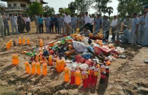 商业部长班苏拉萨、货检局总监莫碧乐、暹粒省初级法院检察官高万烈、于前天下午在暹粒省进行销毁活动。