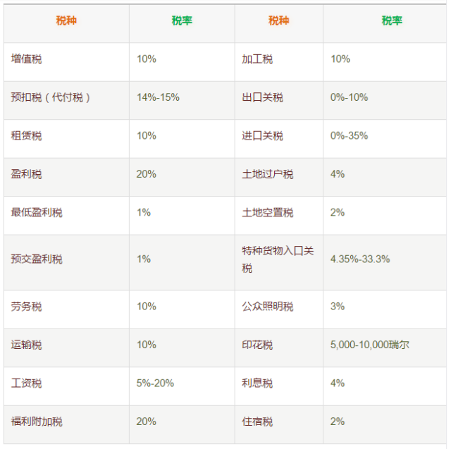 | 柬埔寨是以间接税为主的国家,现行的主要税种有:公司所得税、个人所得税、增值税、最低税、特定商品和服务税、印花税等。 (一)主要税种 (1)纳税人 营业利润包括资本利得,消极所得包括利息、特许权使用费、租金等。 公司和常设机构的标准税率为20%,政府鼓励的投资企业可以享受9%的优惠税率,从事石油、天然气和特定矿产资源开发公司的税率为30%。 ①个人经营的咨询服务收入、无形资产的特许权使用费等,税率为15%; ②动产、不动产的租赁收入,税率为10%; ③居民定期储蓄的利息,税率为6%; ④居民非定期储蓄的利息,税率为4%; ⑤非居民的储蓄利息、经营收入、特许权使用费等,税率为14%。 计算机、电子信息系统、软件与数据处理设备等的折旧率为50%,使用余额递减折旧法;汽车与办公用具设备等的折旧率为25%,使用余额递减折旧法; 其他有形资产的折旧率为20%,使用余额递减折旧法; 对于合格投资项目的有形资产实行特别再折旧,即购买资产以后第一年可以按照该资产成本加提折旧40%。 无形资产的折旧率按照其规定年限使用直线折旧法摊销。 自然资源的折耗有特别规定。 ②亏损结转。亏损额可以向后结转,期限为5年,不允许向前结转。 (1) 纳税人 柬埔寨居民个人要就其来自柬埔寨境内、境外的工资收入纳税,非居民个人仅就其来源于柬埔寨境内的工资收入纳税。 非居民个人的工资所得税税率为20%。 在柬埔寨境内提供货物或者劳务的企业和个人有缴纳增值税的义务。 增值税的税率为10%,出口货物和劳务适用零税率。 提供下列劳务免征增值税:公共邮电业的服务、医疗卫生业的服务、国有公共运输业和电力事业、保险业和特定的金融服务。 (1)最低税 不属于公司所得税和增值税的纳税人有缴纳最低税的义务。最低税的计税依据为提供服务和货物者的营业收入,税率为1%。 (2)特定商品和服务税 从事土地、建筑物租赁等事业者有缴纳土地和房屋的租赁税的义务。土地和房屋的租赁税以从事土地、房屋租赁者取得的租赁收入为计税依据,税率为10%。 (4)印花税 印花税是对特定的正式文书、特定的广告等征收的,税额根据广告等所设置的场所、使用的照明和国家语言的不同而定。 此外,在转让空闲土地、重型和轻型卡车、轿车、摩托车、游艇等特定资产时,按照转让价值的4%缴纳印花税。 (5)未使用土地税 (6)运输工具税 (二)主要税收优惠 根据2005年9月颁布的《柬埔寨王国投资法修正法实施细则》规定,柬埔寨政府对符合政府鼓励投资项目的企业给予如下的税收优惠: 柬埔寨政府对于符合政府鼓励的投资项目且取得的利润在柬境内进行再投资的企业,给予加速折旧税收优惠。 在柬政府设置的经济特区内进行投资开发的企业,可享受免缴公司所得税的待遇,免税期限最长为9年; 在区内进行基础设施建设所需进口的设备、建设资材可以免缴进口关税。 柬埔寨税种小常识 柬埔寨的经济法律管理体系吸纳了西方发达国家的税务管理体系模式,科学而严密,有利于支持国家经济的发展。对于华人企业来讲,在执行缴税的过程中最重要的是要灵活变通。 柬埔寨王国政府目前主要实行的税种有下列几项(外资企业一般都会遇到,特别是制衣厂、建设工程、转口贸易公司、各类加工企业等):
