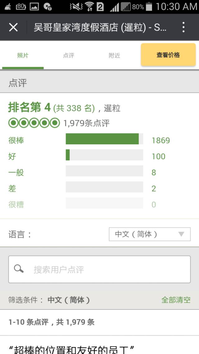 最近,Tripadvisor著名旅游网站 公布2017年全球最佳酒店排名 柬埔寨4家酒店入选 ↓ Tripadvisor是全球最大最受欢迎的旅游社区,也是全球第一的旅游评论网站。每月独立访问量达3.4亿人,同时拥有超过7800万的注册会员以及超过2亿条旅游点评和评论。 2017年世界最佳酒店排名,该奖项按分类分别是:热门酒店、小型酒店、物超所值酒店最奢华酒店、最佳服务酒店、民宿、最浪漫酒店、全家出游、名人堂。每类奖项都会有25个酒店入选。其中,柬埔寨入选4家酒店,5个奖项。 柬埔寨获奖的酒店包括 ▼ 热门酒店排名第7 最佳服务酒店排名第8 在338家暹粒酒店中排名第4 吴哥皇家湾度假酒店 Shinta Mani Resort 地址:Junction of Oum Khun and 14 Str | Svay Dangkum, Siem Reap 855, Cambodia (原名Royal Bay Inn Angkor Resort) 点评摘选 ▼ 我和我的妻子在这里度过了两个晚上作为我们湄公河之旅的一部分。酒店的安排很周到,并且位置也很好,周围有市场和餐馆。员工非常友好,对于我们支持柬埔寨的经济的事实也很感激。我们超喜欢在这里的时光。 酒店图片 ▼ 最佳服务酒店排名第14在338家暹粒酒店中排名第3金殿公寓 Golden Temple Residence地址:Sok San Road, Steung Thmei | Located in Old Market Areas, Siem Reap, Cambodia 点评摘选 ▼ 这家酒店是一个可爱的酒店,我们唯一的遗憾是我们没办法再住长些。酒店服务人员都非常好——如此友好,房间也很好——很大,现代化,矿场的浴室和厕所,舒适的床。每天的早餐也很好,晚上欢乐时光还有免费的酒水!可爱的重新装修过的游泳池,可以在大热天一下子扎进去。酒店的地理位置很好,就在城镇里靠近休闲一条街,附近还有酒吧、餐馆等,如果要去寺庙可能要稍远一点。我们很喜欢柬埔寨,也很喜欢这家酒店,我们还会再来的。 酒店图片 ▼ 最浪漫酒店排名第21在338家暹粒酒店中排名第13 吴哥纪事酒店 地址:Wat Damnak Village, Salakamreuk Commune, Siem Reap, Cambodia 点评摘选 ▼ 在亚洲旅行了一个月后,这家酒店因为他们的员工脱颖而出,他们是我见过最快乐的人了。杰西卡非常欢迎我们,给了我们非常大的帮助,她帮我们安排了在当地的旅行,她甚至在她放假期间还来跟我们道别。酒店的位置很好,只需走一小段路就可以进入城镇。强烈推荐这个酒店给你们每一个人。 酒店图片 ▼ 最奢华酒店排名第24在338家暹粒酒店中排名第8 洛特斯布兰科贵宾楼酒店 The Privilege Floor by LOTUS BLANC 地址:National Road 6, Kruos Village | First floors of Lotus Blanc Resort, Siem Reap 17259, Cambodia 点评摘选 ▼ 刚来到柬埔寨,就有专门的司机举着我们的名字来接我们,而且位置非常便利,十分钟就到了。到了酒店,有热情的服务员在门口专门迎接我们,给我们送饮料,为我们介绍各种设施,还细致地给我们介绍各种景点。第一次体验这样贴心的服务,赞赞赞~当然酒店环境也是棒棒滴哈哈 酒店图片 ▼ 来自:柬单网 |