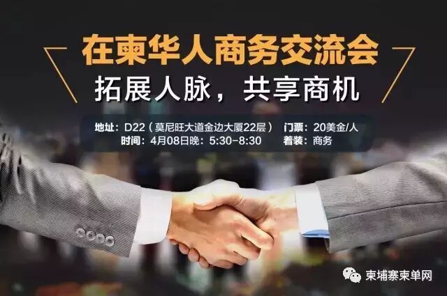 柬埔寨 四月 Cambodia 大事件 热 HOT 热 HOT 热 HOT ●●● 柬新年要放假4天 柬埔寨将于4月14到16日迎来一年一度的新年,这三天假期期间是法定休假,也是工人属于有薪的假期。然而,今年的16日正好碰上周日,所以劳工部提醒雇主允许工人在柬新年假期休息增至4日。 ●●● 在柬华人商务交流会来啦 4月8日,正在莫尼旺大道上的金边大厦22层楼上,将有一场盛大的在柬华人商务交流会。 这场商务交流将给你给你最全面的华人信息, 最具潜力的商业合作! 这一天,来自房地产,建筑建材,金融,银行,保险,物流,贸易,互联网,法律,教育,媒体,零售,服务业的250位各路行业大咖将云集在此。 报名联系方式 微信:sales58cam ●●● 中柬直飞航班更多了 春秋航空从3月28日起开通金边至上海航线 每周二 、 四 、 六直飞。 9C8533航班,上海起飞时间14时55分,金边落地时间19时30分; 9C8534航班,金边起飞时间20时30分,上海落地时间零时50分。 另外,3月29日起,春秋航空开通金边至深圳航线 ,每周三 、 六直飞。 9C8687航班,深圳起飞时间18 时15分,金边落地时间21时; 9C8688航班,金边起飞时间22时,深圳落地时间零时30分。 ●●● 柬埔寨驾驶新规 驾驶员在驾驶途中,不遵守交通红绿灯,或者违犯交通方向行驶,或者驾驶压上“禁止经过图标”等,将面对被罚款从2.5万到10万瑞尔。 另外,超速行驶、没有牌照、汽车安全设备不符合标准、不遵守交通指示牌行驶等犯规的驾驶员也将会被严厉惩罚。 ●●● 4月份更省钱了 洪森总理公布4月1日起,小额贷款利率将从25%降至18% 且从4月1日起,电费也会降价。 用电量低于50度的用户,每度电费将降至610瑞尔。 用电量低于10度的用户将降至480瑞尔。 用电量超过50度的用户也将降至770瑞尔 ●●● 市值1.8亿美元的西港要上市了 根据规定,公司上市必须连续3年盈利。从2012年至2014年,西哈努克港一直保持利润增长。因此符合了上市的规定。 西哈努克港将在4月举行首场公开询价圈购,为挂牌上市向前迈进一大步。如果成功上市,它将成为第二家上市的国营企业,成为柬埔寨第五家上市公司。 西哈努克港将向公众发售港口股票总数的15%至20%,预计可筹集3600万美元,而港口市值则达到1.8亿美元。真是厉害了~ ●●● 柬新年首座人行天桥将暂时开放使用 柬埔寨将于4月14到16日迎来一年一度的新年,这三天假期期间是法定休假,也是工人属于有薪的假期。然而,今年的16日正好碰上周日,所以劳工部提醒雇主允许工人在柬新年假期休息增至4日。 ●●● 柬新年期间可免费乘坐公交车 洪森总理给人民发福利啦! 今年4月份在柬新年期间, 金边的57辆公交车,即金边各路线公交 将免费乘坐5天,为了庆祝柬新年的到来。 即从4月12日到4月16日。 ●●● 柬埔寨移动电话行业竞争更大了 越南最大移动电话零售商----Mobile World Investment Corp(MWG)计划进军柬埔寨市场。