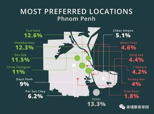 堆谷、桑园、水净华桥成最热购买地 ▼ 在城市的选择上,受访者中金边占65%,西港占15%,暹粒占10%。而在金边,堆谷区、桑园区、水净华桥区是最受欢迎的购买地点,雷西郊区和巴雷布欧区则最不受欢迎。其中影响选择主要因素是位置(50%),其次是投资回报率(20%),价格(16%)和周边基础设施(10%)。 而在房型的选择上,23%的人倾向公寓,22%的人倾向排屋,18%的人想买别墅。当被问及在柬埔寨买房的目的时, 53.3%的人是自己住,46.7%的人是用来投资。 来自:柬单网 |