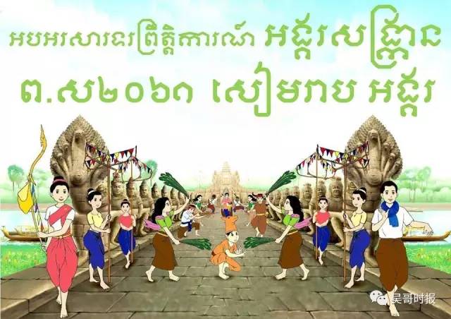 今天在吴哥窟、战象台、炯茹夜市、酒吧街等有丰富多彩的娱乐活动。 上午8点,洪森及夫人文拉妮等出席暹粒吴哥景区举行的吴哥宋干节开幕式。 上午洪森及夫人等出席吴哥宋干节开幕式 傍晚6点在吴哥窟护城河还有放浮灯等活动。吴哥景区将开放到晚上8点,从昨(13)晚开始,景区夜灯已开。 傍晚六点放吉祥浮灯仪式 让我们一起来领略吴哥窟和平时不一样的璀璨夜景吧。 来自:吴哥时报 |