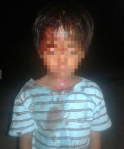 男童被对方拿着瓢猛打头部,破头流血缝三针。 |