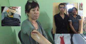 (柬埔寨‧金边讯)两名男子骑摩托车掠夺外国女子手提包不成,反而摔倒,惊动附近警方,最终被逮捕。