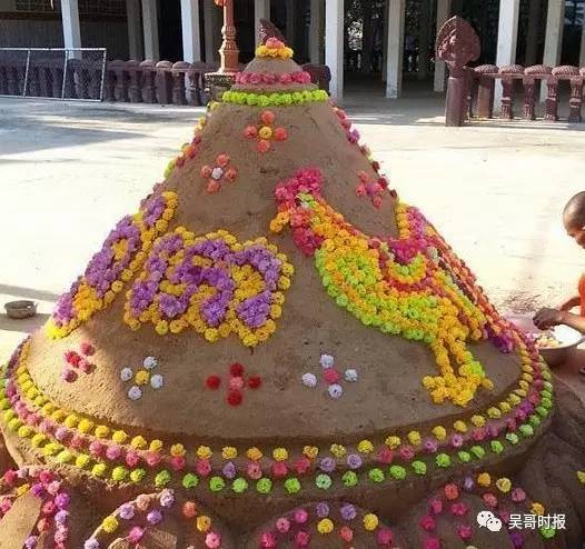 今天是柬新年的最后一天,(明天为调休的假期,但柬新年就算结束了),在塔仔山的游乐活动还将继续进行。此外,很多民众将去寺庙祈福,寺庙也非常热闹,有兴趣的朋友不妨去看看。 寺庙鸡年主题的沙山 来自:吴哥时报 |