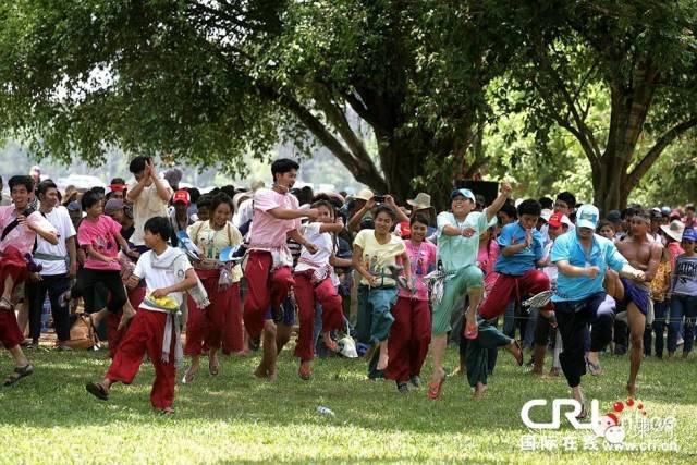 第二天为辞岁,人们去寺庙听诵经文,同时小孩子可以做各种带有当地特色的游戏活动;这一天,柬埔寨家家户户会为无家可归的穷人布施,来表达对不幸之人的同情。同时,也会有举家前往寺庙供奉先人。这一天的主要习俗是布施、观看表演。 第三天为新岁,这天佛教信徒都会涌入佛寺,听僧侣诵经并布施斋饭纳福、给佛像施沐浴礼、堆沙山。他们在佛寺泼水、抹粉、观看演唱会,以及狂玩民间传统游戏,同时宣告为期三天的柬新年正式落幕。这一天的传统习俗有,浴佛像、建沙塔、丢水布。 柬埔寨新年期间,柬埔寨在暹粒省隆重举办“宋干”庆新年活动,柬埔寨首相洪森和文化艺术部呼吁国人前往暹粒省欢度佳节。 洪森说:“我在此邀请同胞们踊跃参加在暹粒省隆重举办的宋干庆新年的活动,参与传承和保护我国高尚文明的文化,共同欣赏我国传统舞蹈、歌曲等文艺表演,以及参加游玩传统游戏。” 文化艺术部长彭萨卡娜也借新年之际呼吁柬埔寨广大人民,尤其是青年人积极传承和保护柬埔寨的文化,踊跃游玩柬传统游戏。 她说,每逢柬埔寨新年前后期间,在柬各地,尤其是在寺庙里都会举行各种传统游戏,如拔河、丢安坤、藏手帕等等。因此,除了前辈要组织游玩这些传统游戏外,青年人都应该踊跃参加游玩。 丢安坤游戏 彭萨卡娜部长也说,目前,柬埔寨许许多多的青年人都很重视西方国家的节日,如情人节、圣诞节等等,却忽视了自己祖先高尚和文节的文化。 因此,她希望借此机会呼吁和提高广大青年人的警惕,来重视传承和保护自己国家的传统文化。 她还说,今年,旅游部和文化部等相关部门也在暹粒省隆重举办“吴哥宋干”庆新年活动,因此希望广大人民积极和踊跃参加活动,共同欢乐度过柬新年。 金边动用4000名武装力量维护治安 至于在首都金边,为了维护好在柬新年4天期间的治安和秩序,当局一共动用了4000多名武装力量来维护治安。 金边市政府的消息指出,这些武装力量将安排在各个寺院、旅游区、娱乐中心等,主要目的是确保人民快快乐乐过节。来自:柬约 |