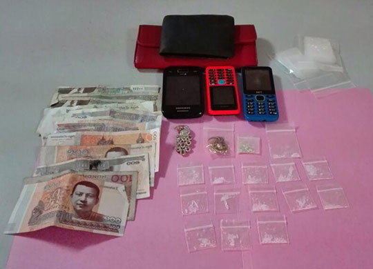 前天下午11时10分,警方在金边市隆边区新街市3分区逮捕3名涉嫌贩卖毒品的男女,押往警局立案。警方在行动中起获21小包毒品。(柬埔寨星洲日报)