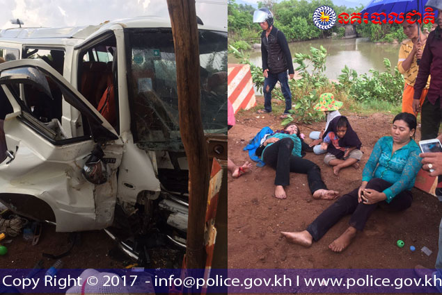 一辆厢型车失控猛撞桥栏,导致14人受轻重伤。 这起车祸是于前天下午15时30分,在菩萨省哥哥县发生。司机为宁柏拉(32岁),与乘客们同为波里波县居民。 警方说,宁柏拉开车载客人前往菩萨省卓拉英瀑布旅游区,不知何故失控猛撞桥栏。(柬埔寨星洲日报)
