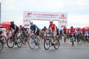“Run & Ride”慈善活动单车赛于昨天上午举行。(柬埔寨星洲日报) |
