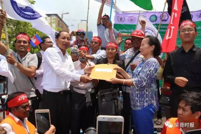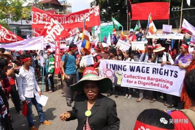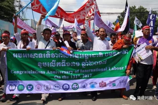 今天是五一国际劳动节,上午多个工会联合组织数千人举行游行,提出了明年底薪250$等诉求。 工人们游行的队伍 参加今日上午游行的工人来自柬埔寨工人联合会、柬埔寨旅游服务工人联合会、柬埔寨农业工人联合会、非经济体系工人协会、餐饮服务业工人联合会、工业工人联合会、运输工人联合会、建筑、木材工人联合会等16个工会组织。组织方声称有超过三千人参加了活动。 活动现场 政府出动大批警力维持秩序。此前政府曾表示,五一节不允许在公共场合游行示威。但工人们仍然按原计划举行了游行,虽然也受到了一些阻拦,但总体平和,没有发生冲突。 警方严阵以待 上午,《吴哥时报》记者在活动现场看到,因为警方的阻拦,游行队伍只能到达俄罗斯大使馆门前,后来工人们在靠近国会的地方举行了集会,用货车搭起了一个临时舞台,工人代表轮流上台表达诉求。最后,由工会联合会、成衣工会民主联盟主席阿吞向国会代表递交了请愿书。 工会主席阿吞递交请愿书 工人们一共提出了16条诉求,分别是: 1、制衣、鞋厂等工人底薪207$,公务员、建筑、旅游、服务等行业底薪250$; 2、要求工人有退休金; 3、政府保证工会自由合法得到保障; 4、保障高危行业的工作环境安全; 5、政府不得使用武力恐吓工会代表及工人; 6、政府撤销对工会领导层的控告; 7、要求雇主不能拿短期合同来压迫工人; 8、政府安置失业者; 9、给家庭主妇、女工提供保障; 10、设立独立的法院,专门快速解决工人的问题; 11、扩大农业市场; 12.设立相关机制,保证国内外移民的权益; 13、严格管制公司老板,严防没有补偿工人就宣布公司倒闭; 14、对妇女和青年提供技术培训,以减少工作中的事故; 15、严格把控工作环境卫生,减少中毒事件; 16、申请政府介入机场、赌场等公司,让工会成员可以回去工作并补发工资。 建筑工人举行游行 此外,昨(30)日,约300名建筑工人已提前举行了游行并向国会递交请愿书,诉求更安全的工作环境及提高待遇。来自:吴哥时报 |