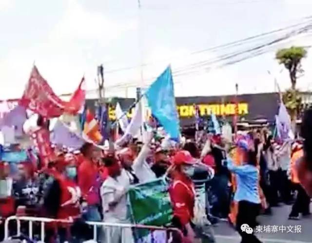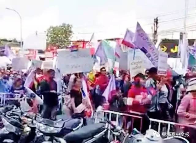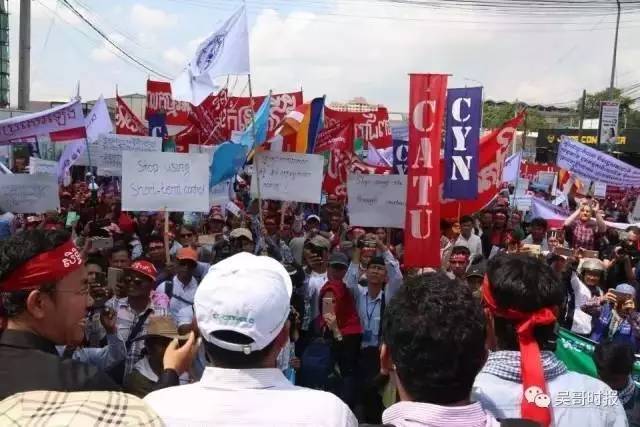 今天(5月1日)劳动节金边市数千名工人在工会的组织下涌上街头,要求加薪和改善工作条件。 现场视频1: 现场视频2: 柬埔寨劳工联合会(CLC)主席艾吞此前在接受媒体采访时称,参加劳动节游行的工人来自16个工会组织,他们最大的诉求是争取明年成衣和制鞋厂工人底薪调至250美元。当天工人诉求包括要求底薪制度普及到各个领域,如建筑业、服务业和旅游业等,让在这些领域工作的人员都能受惠。 他表示,参加劳动节游行的工会及相关协会和非政府组织已经联署公函呈上金边市府,要求在5月1日举行游行活动,但未获得政府的批准。 上星期五,服务业、农业和工厂等工会和协会代表向政府提交游行申请,并游行至劳工部提交请愿书。 各工会将联合举行游行(从上往下是:柬埔寨工人联合会、柬埔寨旅游服务工人联合会、柬埔寨农业工人联合会、非经济体系工人协会、餐饮服务业工人联合会、工业工人联合会、运输工人联合会、建筑、木材工人联合会) 金边市政府曾警告各工会和协会领导,如果五一在公共场地集会游行,政府将采取法律手段制止。柬埔寨宪法第37条和51条规定,人民有自由进行和平的罢工、示威游行的权利。但在集会游行前需先向政府提出申请,政府需作出正面回应,并采取安保措施。 金边市政府明确表示,各工会协会不能在公共工场地进行集会游行示威活动,只能在工会自己的场地或者其他经过私人同意的场地进行。不能影响公共安全秩序,否则政府将采取措施制止,一切后果自负。 “即使市府不允许,工人还是按照计划游行,以表达他们的诉求。”艾吞称。 艾吞告诉记者,金边市府去年也不批准工会在劳工节游行,但工人在当天还是举行了游行,而且当局也并没有加以阻止,反而还派出大批警员协助维持秩序。 “我相信今年情况与去年一样,市府虽然不同意工人游行,但不会采取制止行动。” 根据计划,今天一大早来自不同工会数千名工人开始在柬埔寨发展理事会花园聚集,根据之前的游行计划如下: 五一节工会集会原游行安排: 【7:00—7:30】 工人自愿者与其他机构集合 【7:30—9:30】 游行到国会 【9:30——9:50】 陈述发言庆祝劳动节 【9:50—10:50】 工会代表和其他协会陈情 【10:50—11:10】 向国会递交请愿书 【11:10—11:30】 宣布活动结束 政府出动大批警力维持秩序。此前政府曾表示,五一节不允许在公共场合游行示威。但工人们仍然按原计划举行了游行,虽然也受到了一些阻拦,但总体平和,没有发生冲突。 因为警方的阻拦,游行队伍只能到达俄罗斯大使馆门前,组织方声称有超过三千人参加了活动。后来工人们在靠近国会的地方举行了集会,用货车搭起了一个临时舞台,工人代表轮流上台表达诉求。 工人们一共提出了16条诉求: