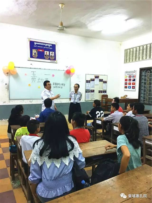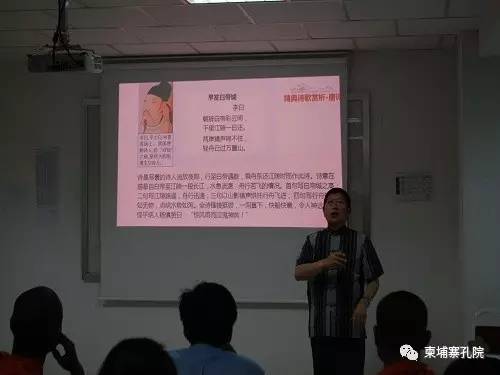 | 2017年5月3日新闻快报 中国诗歌学会会员古力子先生到柬埔寨孔子学院举行诗歌讲座 4月28日晚,应柬埔寨王家研究院孔子学院的邀请,中国诗歌学会会员、中国国际茶文化研究会会员古力子先生为柬埔寨孔子学院亚欧大学中文系的师生带来了一场以《诗歌常识与鉴赏》为主题的精彩讲座,亚欧大学中文系师生80余人参加了讲座。 亚欧大学中文系负责人、公派教师邢慧莹老师首先对古力子先生的到来表示热烈欢迎,并向师生们隆重介绍了古力子先生的主要成就,她希望大家充分利用此次机会,感受中国诗歌的魅力。 古力子先生讲解中国诗歌 古力子先生以《诗经》中的经典作品鉴赏为切入点,就中国诗歌的发展及不同时期的代表人物和名篇做了详细的讲解。他说:“诗歌就如同夜空里闪烁的明星,简单的诗词却蕴含着深刻的哲理,在学习诗歌中可以感受到中华文化的精华”。古力子先生还亲自为同学们动情地朗诵经典诗歌《静夜思》、《咏鹅》、《早发白帝城》、《登鹳雀楼》等作品,学生们在古力子先生悠扬深情的朗诵声中,感受到了中国诗歌的音律美和声韵美,体会到了古力子先生内心深处对诗歌的真挚热爱。古力子先生指出:学习诗歌可以提高大家的汉语水平,可以获得更多人生感悟,用诗歌表达心境、激发斗志、鼓励前行。他希望有更多的柬埔寨学生能理解中国诗歌,从而在诗歌中体会中华文化的精深。在古力子先生的带领下,全体师生一起朗诵苏轼的《念奴娇·赤壁怀古》,激昂动情的朗读将整场讲座氛围推向了高潮,使大家沉浸在诗歌的氛围中,汲取精神的营养。 古力子先生为同学们朗诵诗歌 大二晚上班的游明良同学对中国诗歌的学习表现出很大的兴趣,他说:“通过这次讲座,让我感受到古代和现代诗歌的不同,体会到了中国文化的魅力,以后我要多读诗,加深对中国文化的理解。” 古力子先生教学生朗诵诗歌 古力子,本名周勤,湖北赤壁人,20世纪80年代初师从著名诗人叶文福先生并开始文学创作。先后在国内外报刊杂志发表诗歌、散文数百篇,作品《走在途中》、《情系高棉》更是影响广泛。现致力于诗歌创作和茶文化传播,并创办了诗茶网。 2 柬埔寨孔子学院举行汉语官员班赴华行前会议 5月2日下午,柬埔寨王家研究院孔子学院汉语官员班赴华行前会议在柬埔寨王家研究院孔子学院四楼茶文化交流中心召开。柬埔寨王家研究院院长克洛媞达(Khlot Thyda)院士、柬埔寨王家研究院孔子学院院长谢莫尼勒(H.E.CHEA Munyrith)阁下、中方院长夏修龙教授、院长助理陈晶雯老师以及即将赴华的汉语官员班学员参加了本次会议。 为了让柬埔寨汉语官员班学员进一步了解中国文化,真正感受中国现代化发展成就,柬埔寨王家研究院孔子学院中方合作单位九江学院将于5月11-18日主办汉语官员班学员中国考察活动。 谢莫尼勒院长介绍 谢莫尼勒院长表示,此次考察活动将由克洛媞达院长带队,前往中国江西九江和上海两个城市,体验中国传统文化和现代都市发展。谢莫尼勒院长向学员们详细介绍了此次活动的行程安排、各地特色和注意事项。 柬埔寨孔子学院志愿者教师黄书老师给汉语官员班学员们介绍了中国江西九江的著名茶叶——庐山云雾及其相关知识,并进行了茶艺展示。学员们纷纷表示,一定要珍惜这次赴中国学习和交流的机会,亲身体验中国博大精深的文化。 合影 柬埔寨王家研究院孔子学院汉语官员班自2010年成立至今,培养了众多热爱汉语的官员学员。此次柬埔寨王家研究院孔子学院汉语官员班学员赴中国学习考察活动,将进一步加强中柬两国之间的交流,促进中柬友谊。 合影 3 柬埔寨孔子学院暹粒吴哥高中孔子课堂举办国际劳动节文化讲座 2017年5月1日,柬埔寨王家研究院孔子学院暹粒省吴哥高中孔子课堂举办了以“精彩青春,劳动最美”为主题的“五一”国际动节文化讲座,吴哥高中孔子课堂师生40余人参加了此次活动。 活动现场 柬埔寨和中国一样,每年的劳动节当天都会放假庆祝。本次活动主要分为视频展示、教师讲解、学员讨论、总结发言三个环节。活动负责人志愿者教师杨焕艳从劳动节的起源、发展和意义三个方面对劳动节进行了介绍,让学生们充分了解劳动节的相关知识。 刘老师总结发言 在小组讨论环节,孔子课堂学生钟月亮说:“在柬埔寨,我们也过劳动节,并且会放一天假,以前虽然知道劳动节,但具体的内容不太清楚,通过本次活动,我了解了劳动节的起源、发展和意义,工人们的精神深深地鼓励了我,我要为自己的将来而努力学习和工作,以后做一名优秀的中文导游,学好中国文化,并把柬埔寨吴哥文明讲述给广大中国游客,做一名柬中文化交流的使者”。 活动后合影 活动结束后,吴哥高中孔子课堂负责人刘振老师作总结发言,他说:“今天来参加活动的主要是青年学员,大家正步入社会,走上工作岗位,希望大家通过参加此次活动,深入了解劳动节的意义,努力做对国家、对社会发展有益的事。”刘老师希望大家学好汉语,争取更多的发展机会。 |