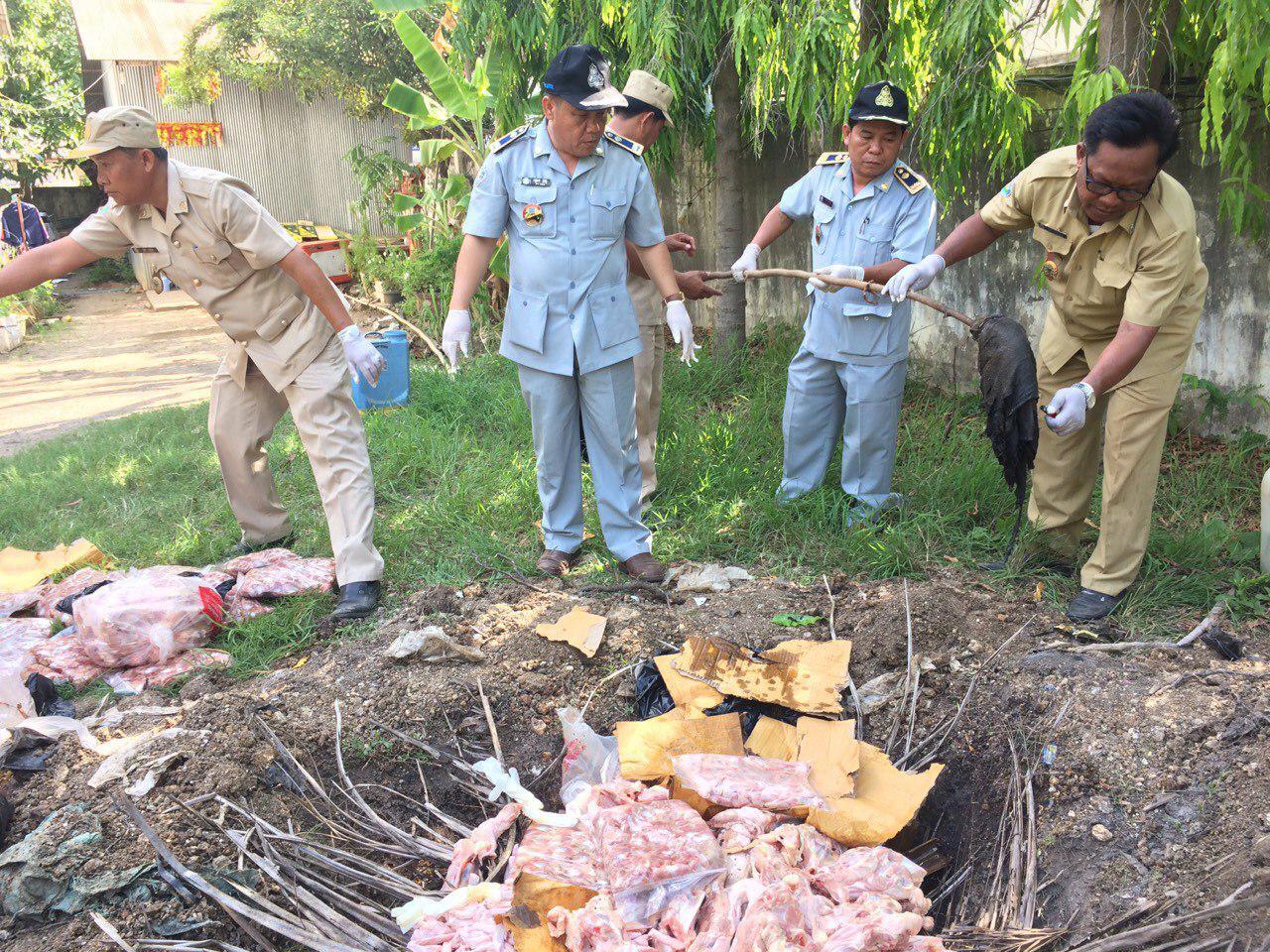 前天上午,卜迭棉芷省货检局官员在波比国际关口查获665公斤从泰国进口的劣质鸡肉,并于当天下午就放火销毁。