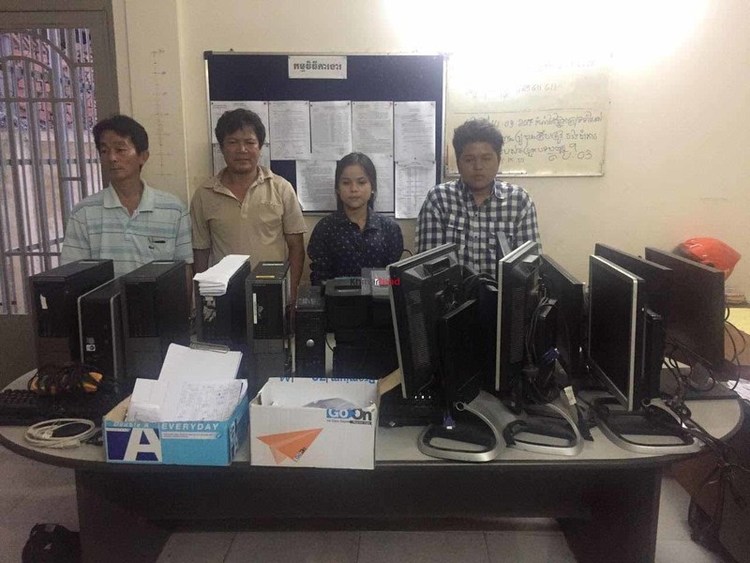 (金边讯)堆谷区警方突袭一家提供网上赌球与彩票尾的网吧,逮捕到2名网吧员工及2赌客,起获大批证物。执法人员是于前天下午4时30分,突袭位于堆谷区德洛呵1分区245路与122路转角的BWin Cafenet网吧。被逮捕的嫌犯为 ...