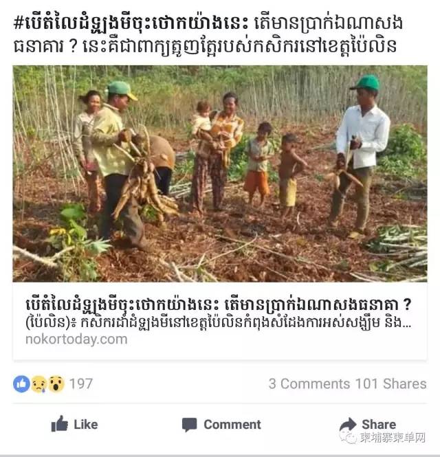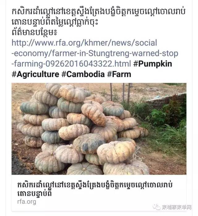 话说柬单网曾经吐槽过柬埔寨进口大蒜卖出天价的事,没有看过或者忘记的小伙伴可以再温习一遍,实拍 | 一颗大蒜7.4$,柬埔寨的物价已经上天了! 今天想要说的是与天价大蒜形成鲜明对比的本地农产品,怎么回事呢?那还得从正当季节的一种水果说起。 没错,就是热带国家最受欢迎的水果——芒果 大家都知道芒果是柬埔寨的特产之一,深受喜爱,可以出口到越南、泰国,再出口到中国。因此很多农民都精心守候着自家的果园,就指着它养活生计呢! 而今年高罗密芒果,不出意外的大丰收了。这本该是件高兴的事,可农民们却苦不堪言,因为它的价格从2000柬币暴跌至200柬币,直接暴跌10倍! 芒果卖不出去,中介商愤而将数百公斤芒果当成垃圾倒在路边。 这条新闻被传到了facebook上,柬埔寨人民看了立马不乐意了! 为啥?因为价格被压低,农民老是赔本的事已经发生了不是一次两次了,大家纷纷吐槽。 有网友甚至把这几年来类似的事件全扒出来了: 南瓜价格降低,上丁省的农民被逼毁掉上万吨南瓜 木薯价格这么低,哪有钱还给银行,这是拜林省农民的抱怨 胡椒价格暴跌,采摘的人工费也贵,那就让它自己坏掉吧 莲藕生病需要买农药治理,但好不容易治好以后,莲藕的价格却下降了。 自从改拾荒,不种橡胶了,现在生活好多了 大家帮忙转发一下吧,1公斤才150瑞尔(相当于人民币2毛5),农民卖不出去坐着哭 聪明的读者应该发现了,这期间有一个关键的点——价格降低。怎么回事呢?其实,柬埔寨农产品的价格跟它的邻国泰国和越南有很大一部分关系。 就拿芒果来说,柬埔寨没有制果干的技术,那只能把芒果出口到泰国,泰国那边制好以后再出口到中国。 再拿蔬菜来说,柬埔寨每天都有消耗大量的蔬菜,家庭式种植的不够吃啊,就从越南那边进口,而越南是工业化的种植,产量多,即使是进口过来也比本地蔬菜便宜,结果呢,柬埔寨自己种植的蔬菜价格就受到了影响。 不过,话说回来,这也不能怪人家泰国和越南,最重要的一点还得说回柬埔寨的技术。 没有加工技术,只能把鲜果出口到邻国,自然就没有价格的主动权; 没有工业化的种植技术,光靠家庭式的种植技术,产量低、供不应求,结果就会出现因进口而打乱市场价格的事情; 还有就是关于种植必须的农药,柬埔寨自己不能生产农药,农民只能购买进口农药,这就加重了生产成本,导致最终售卖价格价高,消费者自然也就更倾向于价格相对便宜的进口蔬菜; 再加上干旱、暴雨等自然灾害的影响,一环扣一环,最终就出现了网友吐槽的尴尬现象。 唉~这事儿,恐怕是不好解决了...... 来自:柬单网 |