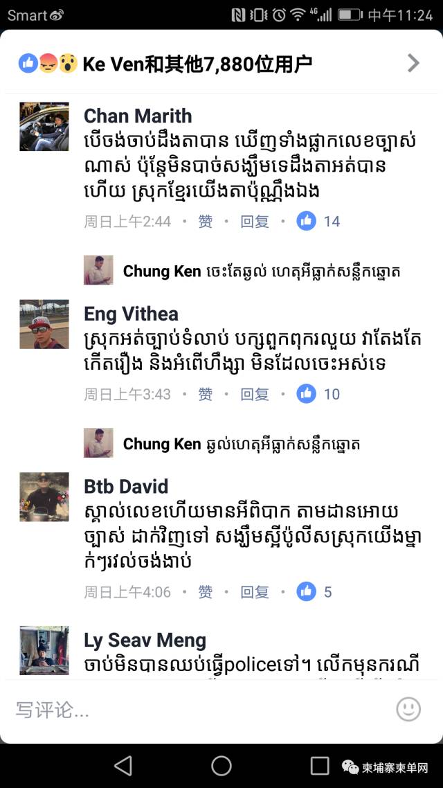 *肇事者与肇事汽车 事件持续发酵: 该事件被柬媒报道后,有越来越多的人关注。不少网民都纷纷发表自己的观点,多数人认为此事一定又是个“无尾案”,警察不作为,终究不会有下文! Chan Marith说:如果想抓人一定可以的,车牌号都非常清楚,但是不用期望了,就知道没用的,我们的国家就这样。 Eng Vithea说:无法无天、裙带关系、腐败的国家经常发生暴力事件,没完没了 Btb David说:车牌号都有了有什么困难的,自己找他去,咱国家的警察就不用寄托希望了,天天忙死了 舆论施压有效? 昨(11)日晚上,司法部发言人金和平针对该事件告知媒体“违法的行为必须接受法律的制裁,即使违法者是执法官员也是一样”。 同时,当天晚上,金边市警察局长也呼吁受害者在12日上午到警察局出面解决,并称将找到肇事者,依法办案。