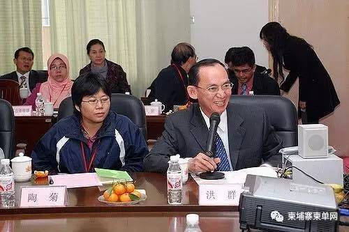 “我没有钱做大生意,就拿了一个摊位来卖衣服,其它的就空在那儿。但没想到1年后中央市场地价暴涨,买一个摊位得好几万。”洪群立马就把13个摊位全出手了,一下子就赚了几十万美金。 (右二为洪群) 4 华文教育不好做 推行改革竟被批判搞贵族教育 从父亲、母亲到伯父、舅妈,洪群一大家子都在柬埔寨从事华文教育的工作。洪群的父亲曾是民生学校的校长,所以他从小就想做一名华文老师。1992年,洪群拿着做生意赚到的钱,在金边创办了一所“华群学校”。