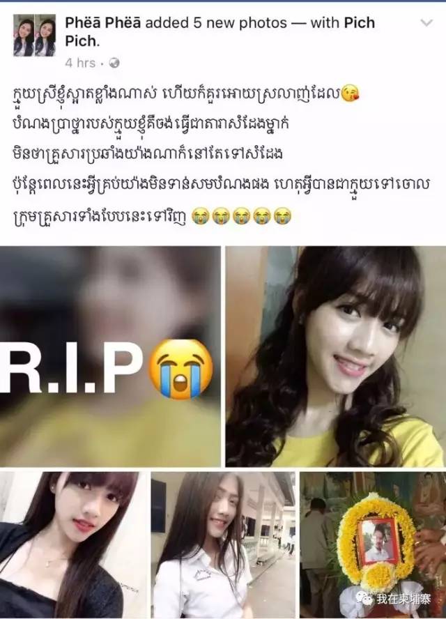 柬国本地的脸书一叫Phea Phea的成员,发文告诉社区的人们: “我的侄女非常漂亮,而且她的心愿就是成为一名艺人,并不管家人怎么反对也是坚持过去表演,可是愿望还没实现的她为什么会这样离开我们了呢?” 他漂亮的侄女死于29号发生的一场交通事故。 这场交通事故是发生在2017年6月29日的下午一点十五分钟,位于金边市仙市区仙市镇西边市场村LIYONGPAT跳桥。 肇事汽车是一辆LXR运输油车,车牌金边3B-0096。 当时卡车从一辆本田ZOOMER X摩托车,车牌金边1FK -4641(同卡车驾驶方向)狠狠撞上去,导致坐在摩托车后面的宋沙坤铁小姐(当场被卷进车底压死在现场)。 宋沙坤铁小姐今年只有18岁,居住在金边市森速区下森隆分区内部村。 宋沙坤铁生前照片 驾驶摩托车的人叫坡西磊落(受轻伤),女性,今年18岁,居住在在金边市森速区下森隆分区内部村。 人生美好步步小心,生命对于每个人都是公平的,有且仅有一次。 愿每位同胞在柬埔寨且行且珍惜。 平平安安到柬来,高高兴兴回国去。 来自:我在柬埔寨 |