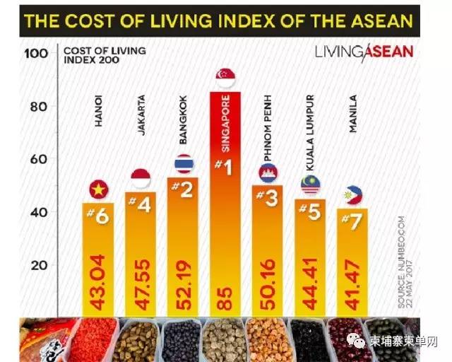 调查得出数据显示,新加坡是东南亚生活费最贵的城市,生活费用指数为85。排名第二的是泰国曼谷,生活费用指数为52.19。金边则排名第三,生活成本指数为50.16、租金指数为19.71、食品及杂货指数为54.90、餐厅价格指数为24.37。柬埔寨首都金边是东南亚生活费最高的城市之一,仅次于新加坡和曼谷。 餐厅饭菜的价格 就吃饭来说,在柬埔寨首都金边,餐厅饭菜的价格与在中国的价格旗鼓相当。