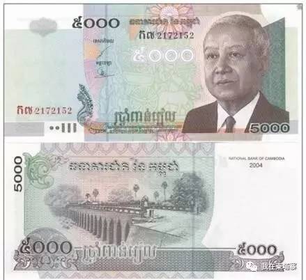 5000 瑞尔,正面是前任国王西哈努克。 背面是 Kampong Kdei 桥是一座用红土砖砌成的大桥,建于 1118 年,在高棉国王阇耶跋摩七世(Jayavarman VII)统治期间所建。桥长 85 米,宽 14 米,有 21 座桥墩。1956 年 Kampong Kdei 桥古桥曾全面整修。这座有 800 年历史的古桥现在仍在发挥其功能。 目前在暹粒市与磅通之间,有十座古桥,Kampong Kdei 桥是最长的一座。不过这座桥离市区需要一个小时的车程,在去金边方向的 6 号公路附近,为了看一座桥要坐一个小时的车好像有点不值。好啦,给您看看图片就好了,懒得跑。