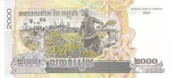 2000 瑞尔的正面是柏威夏寺的正门,柏威夏寺位于泰国与柬埔寨边境,离暹粒有 3.5 个小时的车程。 这座寺庙中 2008 年被列为世界文化遗产,泰国与柬埔寨为争夺此寺庙还发生过两次军事冲突,双方互有伤亡。不过现在局势已定,但上寺庙参观要收门票 10 美金(之前是免费的)。 目前寺庙归柬埔寨,但登上寺庙的路却属于泰国,所以要带护照过去哦。 柏威夏寺也是柬埔寨最经典的 7 个寺庙之一,值得一看哦。 2000 瑞尔的反面则是柬埔寨的田野,一个农妇抓着一把成熟的水稻面露微笑。