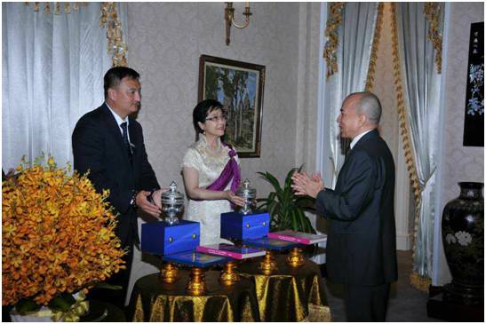 | 【本报消息】应柬埔寨王国国王诺罗敦.西哈莫尼的邀请,美国扶持中小企业国际联盟主席刘程清心女士和柬中国际经贸发展促进会会长龙云海先生等一行,于金边当地时间18日上午,前往王宫同国王西哈莫尼拜会。此次被应邀拜见,是继2017农博会的成功举办,国王对此表示感谢并以会面。 会面中,西哈莫尼国王对来访的一行人员表示真诚的欢迎,并对上个月在柬埔寨成功的举办了规模空前具有历史性意义的农博会表示再次的感谢!西哈莫尼国王深情的说:“柬中之间长期牢固的友谊,像一朵永不凋谢的鲜花,永远开放在晴朗的天空下。”这是中柬友好的真实写照。也忠心的祝福柬中友谊长存。 刘程清心女士对国王的邀请表示感谢!并说:中柬两国人文交流日益密切,给两国人民的关系不断注入新的活力。看到柬埔寨国家建设事业蒸蒸日上,人民生活水平不断的提高,也都是两国人民对未来值得期待。 龙云海会长表示,我们愿意为柬埔寨农业发展和金融数字化发展做出贡献。 会面期间,西哈莫尼国王与随行会面的香港黑龙江对俄经贸发展促进会会长楊洪林,香港龙港汇实业公司董事长袁景阳等全体成员分别合影留念 |