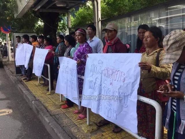 在中国使馆门前请愿的村民代表 今(30)早,来自柏威夏省的原住民代表在中国驻柬埔寨大使馆门前请愿,要求撤走正在柏威夏省开发林地的5家中资公司。 据柬文媒体thmey thmey报道,这些人代表柏威夏省近3000位少数民族原住民及其他居民,控诉这些中资公司侵犯了当地居民的人权、破坏自然环境和造成贪腐等。 他们称,这5家公司属于一家中资集团旗下,经柬政府批准,获得位于柏威夏省的4万多公顷特许地的投资开发权,并与政府签署了协议,用于种植相思树和甘蔗。 这些代表们称,自2012年开始,这5家公司侵占他们的田地、庄园、林地等,开发种植甘蔗、修路、建基地等,使他们开始丢失土地。 村民们阻止中资公司清理土地 还有人称受到威胁、驱赶、谩骂,并因为冲突而受伤。 此外,他们指责中资公司破坏自然环境、破坏社区储备土地、破坏原始森林、破坏原始植被等,并贿赂政府部门帮助他们侵占社区土地。 该公司自5年前开始在柏威夏省兴建糖业产业园,一直与当地村民纠纷不断。 村民们无法理解柬政府部门的所作所为,请求中国政府尊重柬埔寨的人权、保护柬埔寨环境、遵守国际人权原则,将这5家中资公司撤走。 村民代表们在中国使馆对面拉起横幅 来自;吴哥时报 |