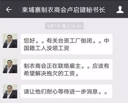 本(9)月7日,本报报道了《台资厂老板跑路 10余同胞讨薪无门》,昨(17)日,该厂的一名中籍员工洪先生联系本报,称他们已经拿到了工资,非常感谢这段时间以来一直在帮助他们的柬埔寨制衣商会,尤其是商会的卢启键秘书长。 在获知消息后,制衣商会立马介入为工人解决问题 7日傍晚,在获知相关消息后,柬埔寨制衣商会立马介入,由卢启键秘书长联系厂方、劳工部、工人等各方协调,争取帮助工人解决被厂方拖欠工资的问题。在经过了与各方近10天的斡旋后,制衣商会终于为柬籍工人争取到了80%的工资和中籍员工60%的工资。 卢秘书长向同胞了解被欠薪情况 据卢秘书长告诉《吴哥时报》记者,在这个过程中,最关键的是要拿到厂方的代理拍卖工厂资产的授权书。如果没有授权书,那就得通过法院拍卖,那将是一个很复杂又漫长的过程,就怕工人们等不起。所以在与厂方取得联系后,卢秘书长亲自飞往台湾获得了厂方签署的拍卖授权书,事情才能这么快解决。“我主要是可怜工人们”,卢秘书长说道。 各方代表在劳工部开会 之后通过公开招标,卖出了工厂的设备等资产,可以为柬籍工人发放工厂所欠薪水的80%和中籍员工工资的60%。一开始有部分工人不肯接受公开招标的最后价钱,一直僵持着。但我方认为这已经是最高价,且需及时发放工资让工人回乡过节和解决同胞们生活上的燃眉之急,并且也得到了大部分工人的支持和同意。 等待领工资的工人们 9月16日开始发工资后,就有更多工人前来,当天工资发放一直持续到了半夜1点多。第二天(17日)一早继续发放。 工人领到了被拖欠的工资 至昨(17)日下午,该厂工人们基本都已经领到了工资。19名中国籍员工已有3名回国,余下的部分人已找到了新的工作。 以下为洪先生的感谢信原文: 亲爱的《吴哥时报》: 我是一家台资工厂的中国籍员工,工厂自去年开工至今已有一年零三个月。由于订单不稳定和经营不善,老板在苦苦支撑了几个月以后选择了撤资跑路,于是便有了贵报9.7的《台资老板跑路,10余同胞讨薪无门》的报道。 自9月7日早上开始,工厂就被封锁,我们中国籍同事就一直在四处讨薪,经历了很多,也去了很多部门。由于国籍与制度的差别,就算工厂被拍卖,我们可能拿不到一分钱。身在他乡,语言障碍,气候炎热,我们举步维艰倍感无助。就在大家心灰意冷疲惫不堪的时候,幸得贵报帮忙报道,从而让制衣商会卢启键秘书长了解到我们的处境,主动联系我们并安慰道,一定会尽最大努力,为我们争取到工资。并嘱咐我们如果找工作遇到困难,也愿意提供帮助。至此,我们才看到了希望。 从9月8日开始,卢秘书长就联系买家、多次艰难地谈判,劳工部、工厂之间来回地奔波。终于找到了买家,为柬籍工人争取到了发放80%的工资额度。工人工资于9月16日晚8:00开始发放,一直到凌晨1点多,秘书长才回家。次日发放完柬籍工人工资后,秘书长又多次找到劳工部、工会强烈提议,发放中国籍员工工资。 正是有了秘书长的辛劳、一诺千金,我们才拿到了工资。我们心里非常感谢卢启键秘书长,感谢制衣公会。感激之情无以言表,愿秘书长先生及其所有帮助过我们的人身体健康,好人一生平安! 来自:吴哥时报 2017年9月17日 |
