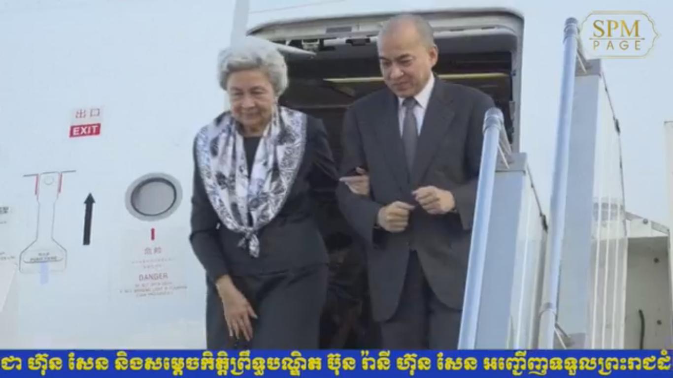 西哈莫尼国王和莫尼烈国母於昨日下午返国。 参议院院长赛冲、国会主席韩桑林、洪森总理与夫人文拉妮、参议员、国会议员、政府高层官员、王室成员、中国驻柬大使熊波等到金边国际机场迎接国王和国母。 今年7月23日,国王和国母前往中国北京进行例行健康检查。(柬埔寨星洲日报)