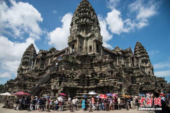 资料图:柬埔寨暹粒著名景点小吴哥窟迎来众多游客。中新社记者 洪坚鹏 摄 柬埔寨人的诗与远方 在一片绿油油的稻田边,我看到了Netflix的巨型广告牌, 其震撼程度不亚于第一次看到耸立在护城河边的吴哥城城门