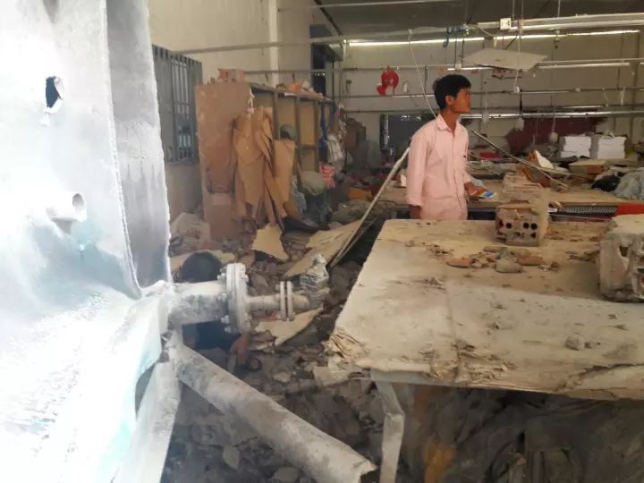 在该厂附近工厂上班的一名工人告诉《吴哥时报》记者,当时发生爆炸的车间里没有人在上班,只有旁边裁床车间的工人在上班,锅炉飞到了裁床桌上,隔壁玻璃厂的隔墙和窗户也被炸开了,受伤人员已经及时送到医院救治。