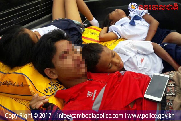 车祸是於昨天上午8时30分,在马德望省特摩谷县5號公路发生。载送弟妹的摩托骑士为田帝(18岁),汽车司机为毛万纳利(38岁),6人都是特摩谷县居民。